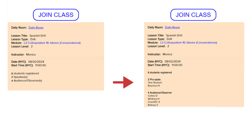 Beepboop Drill Instructors used to have to do an inconvenient workaround every time they wanted to see which students were going to be in their class. Now the information is conveniently available on the first screen the Drill Instructors see when they login to teach. This project lays the groundwork for displaying more info about students to help Drill Instructors better prepare for class and prepare a more personalized learning experience.